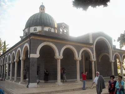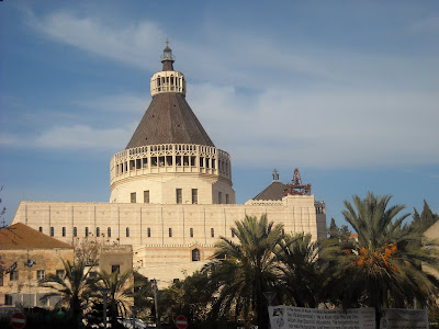 Photos from Israel, Part VI (Bet She'an) There is a giant archaeological dig at Bet She'an. Here is a picture of most of the excavated. The bath house, ampitheatre, columns and foundations are 4,000-4,500 years old. The ampitheatre. Restored pillars at Bet She'an. Photos from Israel, Part V (Mount Tabor -- the coolest part of the trip) These two members of the IDF were making coffee on top of Mount Tabor -- grinding the beans, heating it over an open flame -- and invited our party to join them. It was the best coffee I have ever had, which might be context dependent but might have more to do with the fact that it had cardamon in it. Me with a member of the Israeli Defense Forces. At Mount Tabor, which is not near the border, the IDF was very friendly. No hostilities nearby. They invited us for coffee and let us take their picture with them and the humvee. Nearby, the Church of the Transfiguration. Nice enough church, beautiful view from the top of the hill, but nothing quite compares with hanging out with the IDF. Photos from Israel, Part IV (Sea of Galilee) The Sea of Galilee as seen from my room at the Sheraton in Tiberias. The Sea of Galilee (from a boat on the inland lake) with the Golan Heights in the background. The sea is quite small (21 kms long, 13 kms wide). The White Synagogue, reportedly built upon the synagogue that Jesus used 2000 years ago, in Capernaum ('the town of Jesus'). The Catholic chapel at the Mount of Beatitudes. The River Jordan. Photos from Israel, Part III (Nazareth) City of Nazareth, which is mostly Arab and Muslim today. The cities in the west (north of Tel Aviv) and toward the centre of the country in the north, look like this, built along the sides of hills and mountains. The Church of the Annunciation in Nazareth. Later I will post the art from around the world depicting the Virgin Mary that is displayed in the courtyard outside the church and within the church. Another view of the Church of the Annunciation. Sign put up by locals in front of the Church of the Annunciation. Church of St. Gabriel, the Greek Orthodox Church in Nazareth. Photos from Israel, Part II (Caesarea) Remains of King Herod's palace at Caesarea, an ancient city built on the Mediterranean coast north of Tel Aviv. The city was originally built by Straton I of Sidon but rebuilt, expanded and renamed by Herod to impress his Roman superiors. The remains of the hippodrome at Caesarea. It was open on the east side so the winds and mist from the sea could cool spectators. This is the site of the Apollo Temple built by Herod. When the city was taken over by Christians, they tore down the temple and replaced it with a church. When the Muslims took over the city, they tore down the church and replaced it with a mosque. Walls and a dry moat were built by Louis IV to fortify the city during Crusader times. Saturday, November 22, 2008